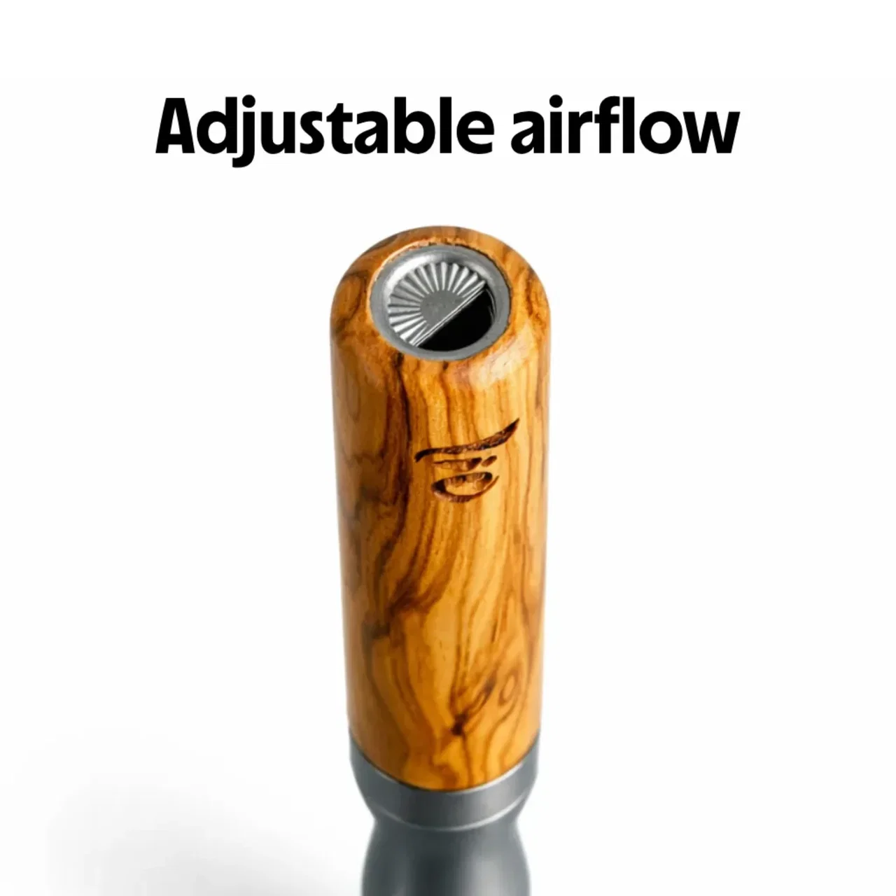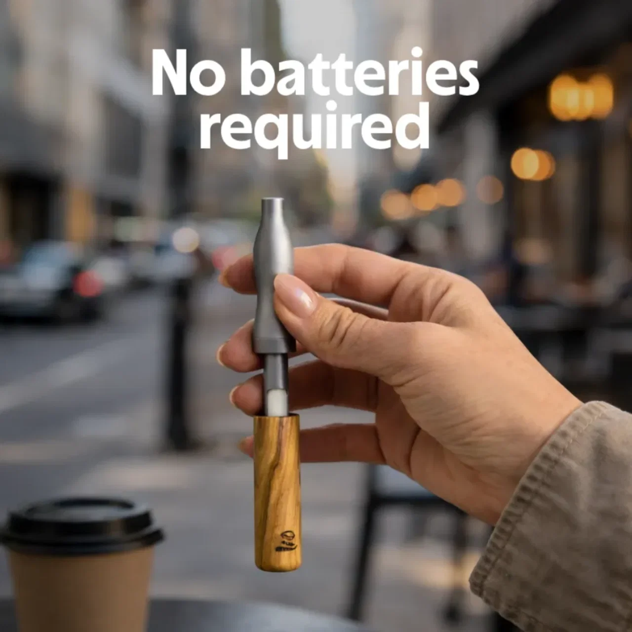 A natural aroma core sits inside the device. When you pull, air passes through it. What comes out is nothing but flavored air, and your breath. That's it.